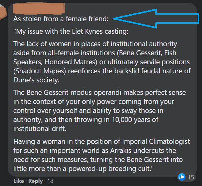Those – and a couple dozen other, similar comments – are in response to someone posting one of the Vanity Pair photos from the upcoming Dune adaptation, in particular this one: